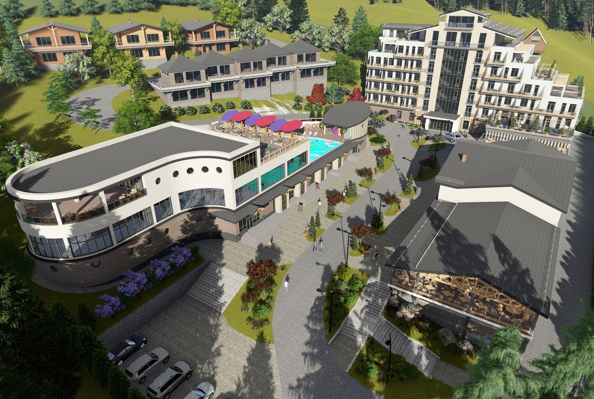 In the main lobby and shared spaces, modern biophilic design elements—like living walls and natural accents—bring the calming essence of the Carpathians indoors. At the same time, thoughtful layout planning ensures a seamless flow from guest reception areas to dining venues, conference halls, and recreational zones. Energy-efficient systems, including advanced climate control and eco-friendly lighting, reflect a commitment to responsible development. Whether arriving for winter sports, spa treatments, or a tranquil holiday in nature, guests at the Hotel and SPA in Bukovel experience comfort, luxury, and an authentic connection to the region’s natural splendor.