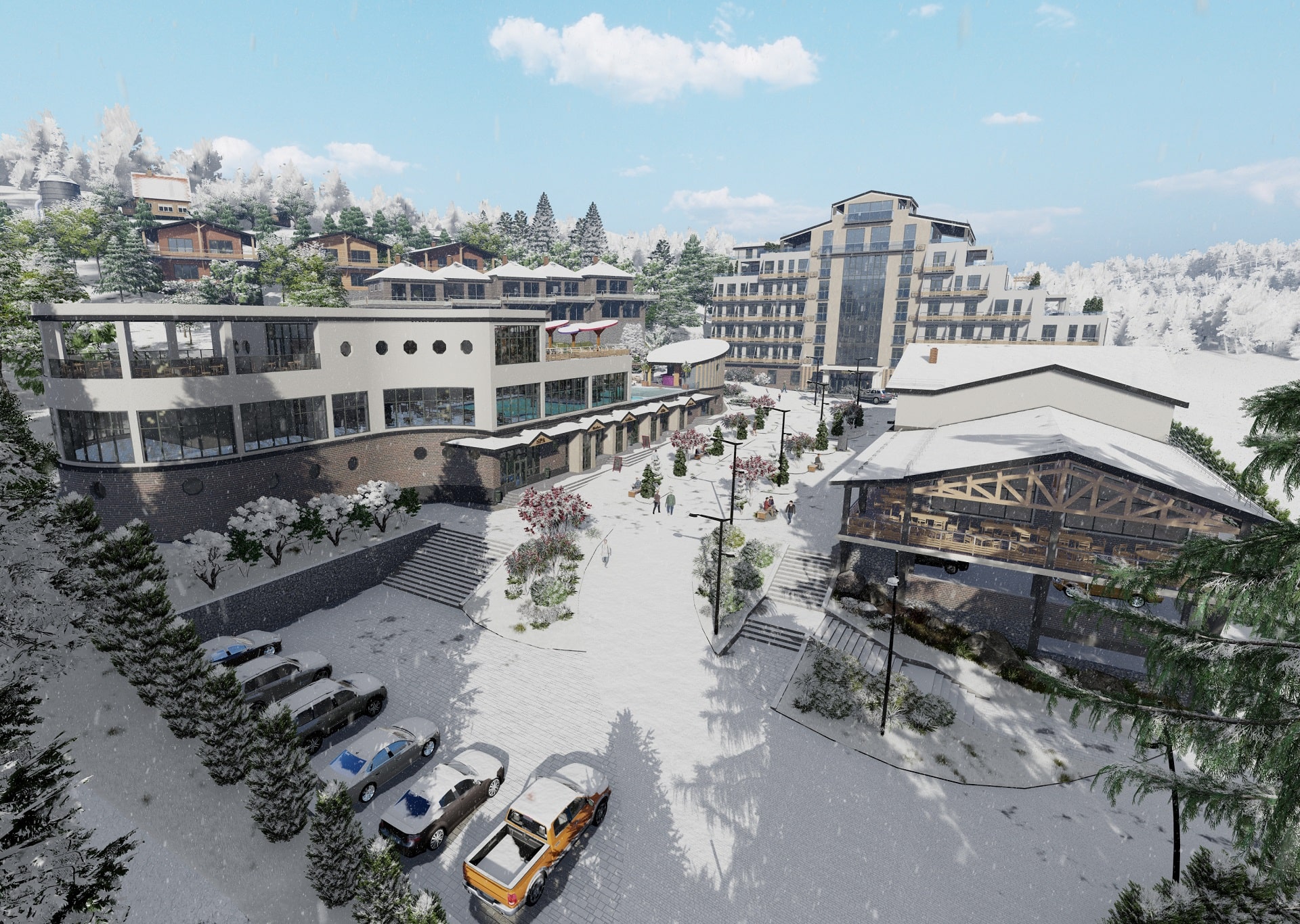 Nestled in the scenic Carpathian Mountains, the Hotel and SPA in Bukovel provides a luxurious retreat for visitors seeking relaxation and adventure in one of Ukraine’s most popular ski regions. The design concept merges mountain aesthetics with world-class hospitality, resulting in an immersive escape that caters to both thrill-seekers and leisure travelers.