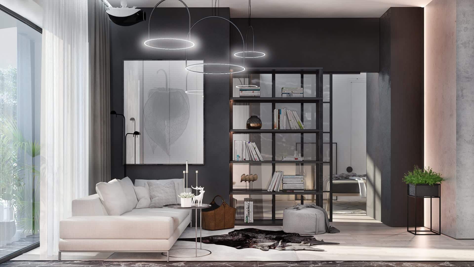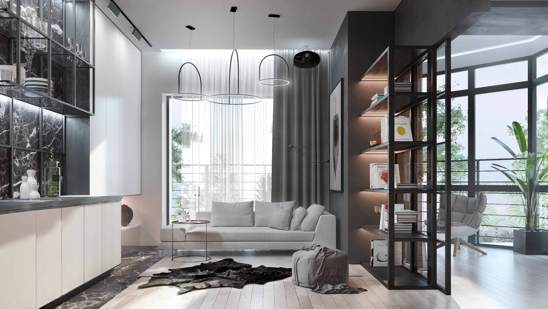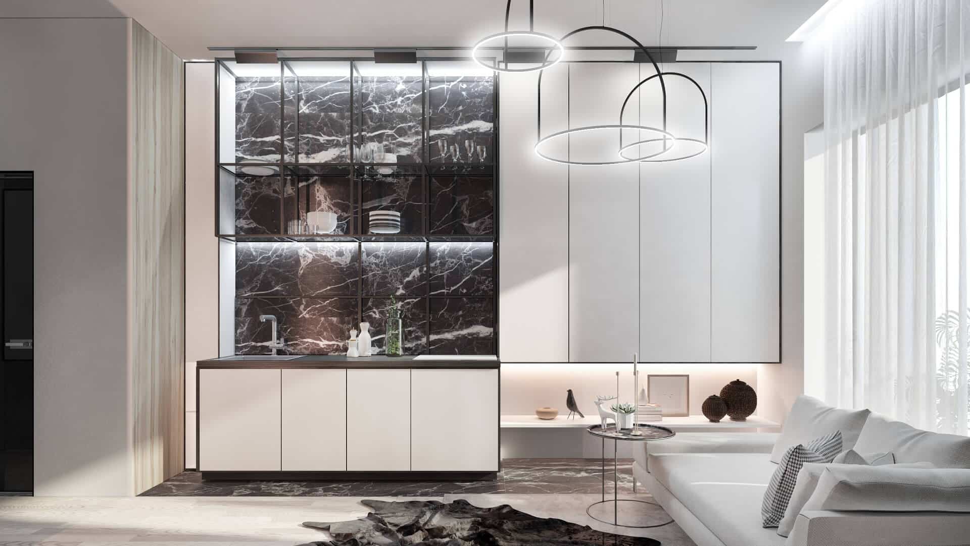 Discover the art of maximizing a modest 515 sq. feet footprint in this elegant apartment designed to merge sophistication with everyday convenience. By pairing a sleek, monochrome palette with carefully curated furnishings, the space radiates comfort while making the absolute most of every square inch. Clean lines, reflective surfaces, and well-placed architectural lighting define a home that’s both stylish and practical.