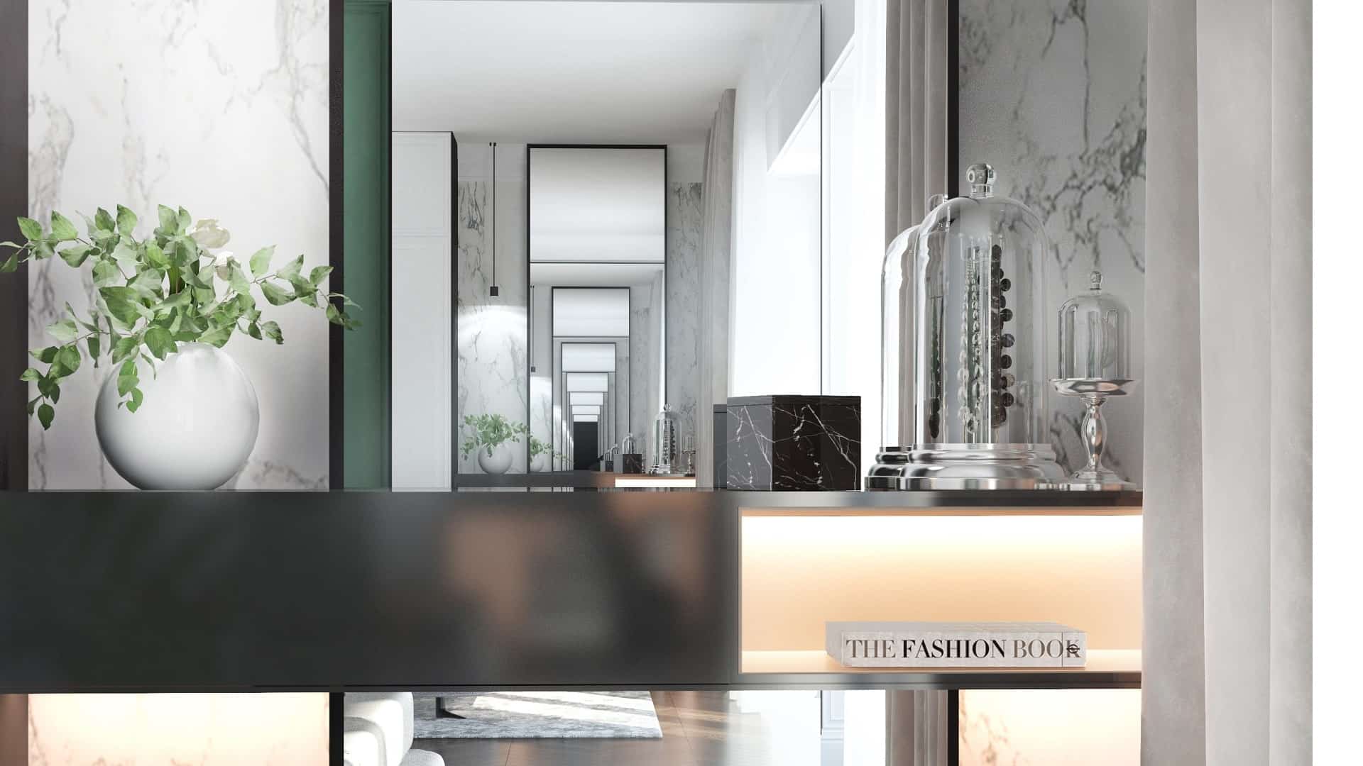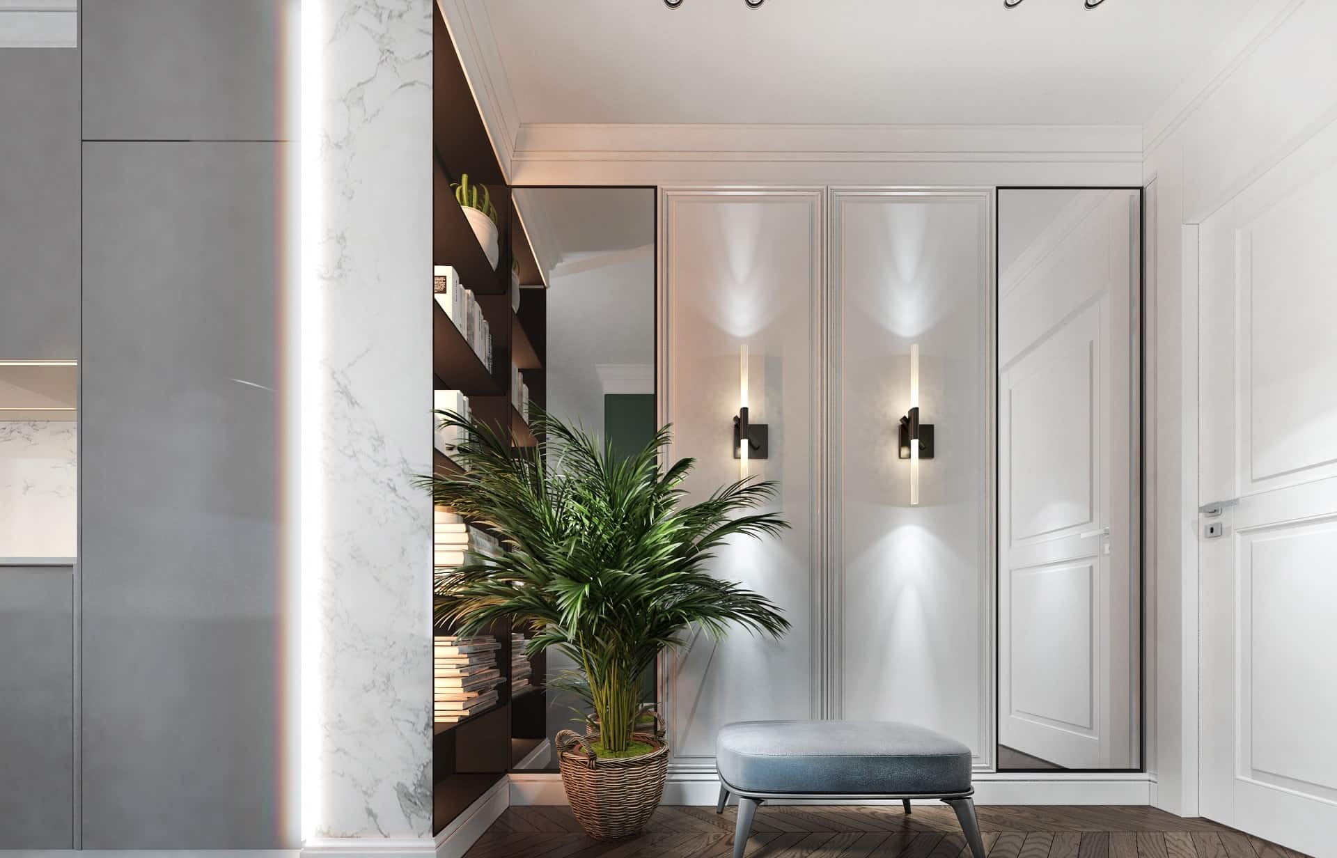 - Reflective surfaces, such as a strategically placed mirror, magnify the light to further enhance the spacious feel.
