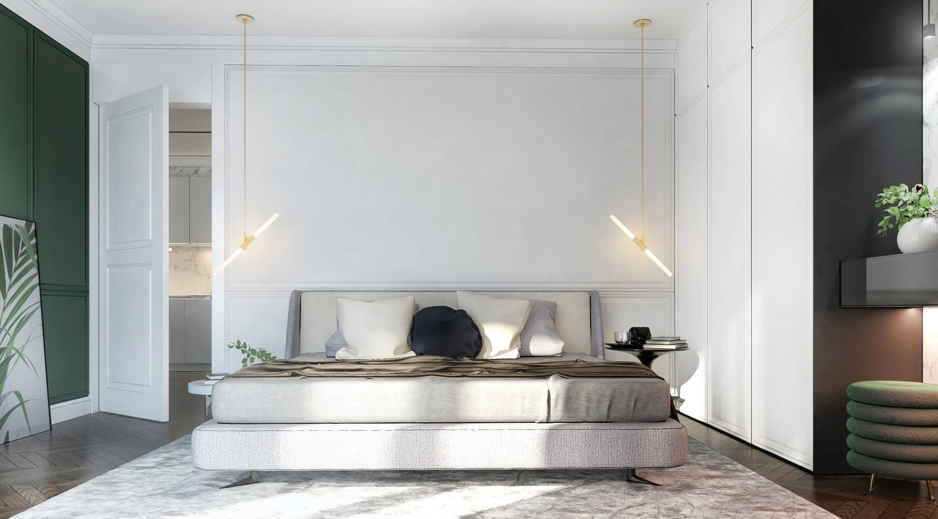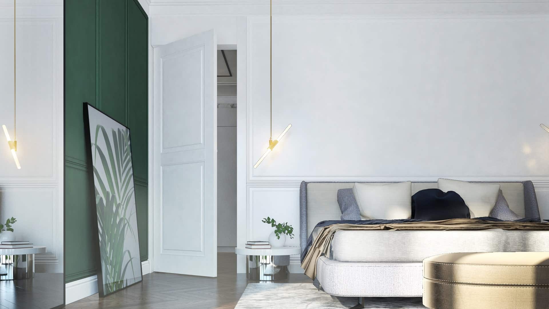 - Classic molding details bring architectural depth to the walls, maintaining a sense of heritage and refinement.
